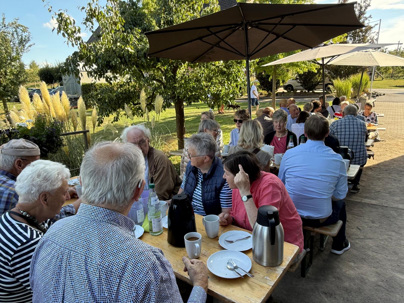 Bei wunderschönem Spätsommerwetter fand der Ausflug seinen Abschluss bei einem Besuch des Pflaumenhofs Stemich. Bei Kaffee und Pflaumenkuchen im Garten Café erläuterte Frau Marion Stemich, die in 5. Generation den Pflaumenhof mit Ihrer Familie bewirtschaftet, die Entwicklung des Pflaumenanbaus in Stromberg.
