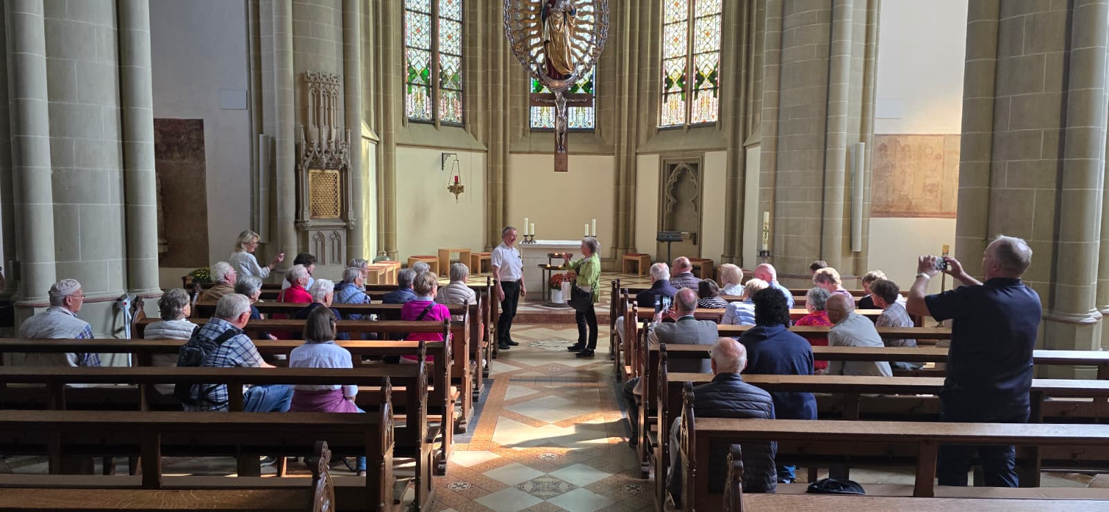 Pfarrer Ehlert führte die Teilnehmer fachkundig durch die Burganlage sowie die Heilig-Kreuz-Kirche, in der das Wundertätige Wallfahrtskreuz seit 1344 verehrt wird.