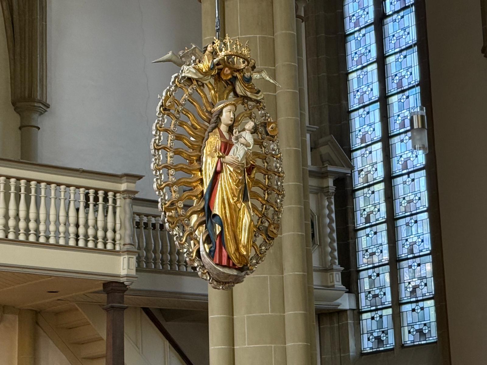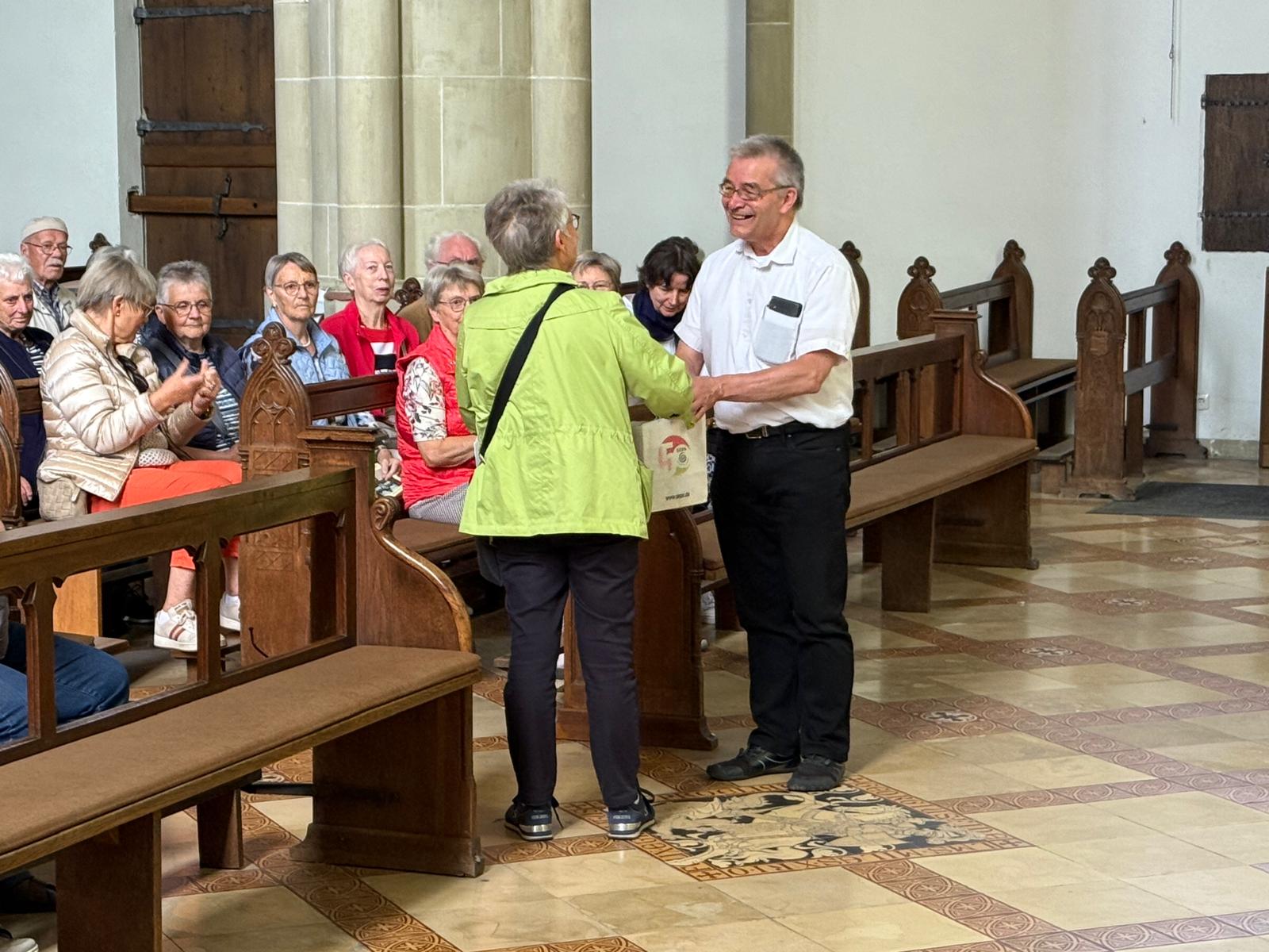 Pfarrer Ehlert führte die Teilnehmer fachkundig durch die Burganlage sowie die Heilig-Kreuz-Kirche, in der das Wundertätige Wallfahrtskreuz seit 1344 verehrt wird.